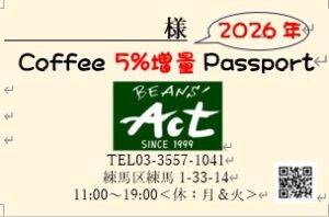 2025年“Coffee Passport”を利用いただき、毎月欠かさず珈琲豆をお求めのお客さまへ!