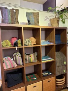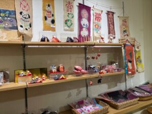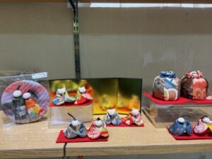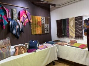「手描きのシルクショール」や、お出掛に「裂き織りのバッグ」、手編みの「あったかベスト」、「お雛様」もお待ちしています!